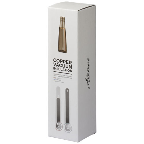 La botella Duke es de acero inoxidable de doble pared 18/8 con aislamiento por vacío. La pared interior está recubierta con cobre para mantener tus bebidas calientes durante 12 horas y frías durante 48 horas. Volumen 500 ml. Presentado en una caja de regalo Avenue. Acero inoxidable.