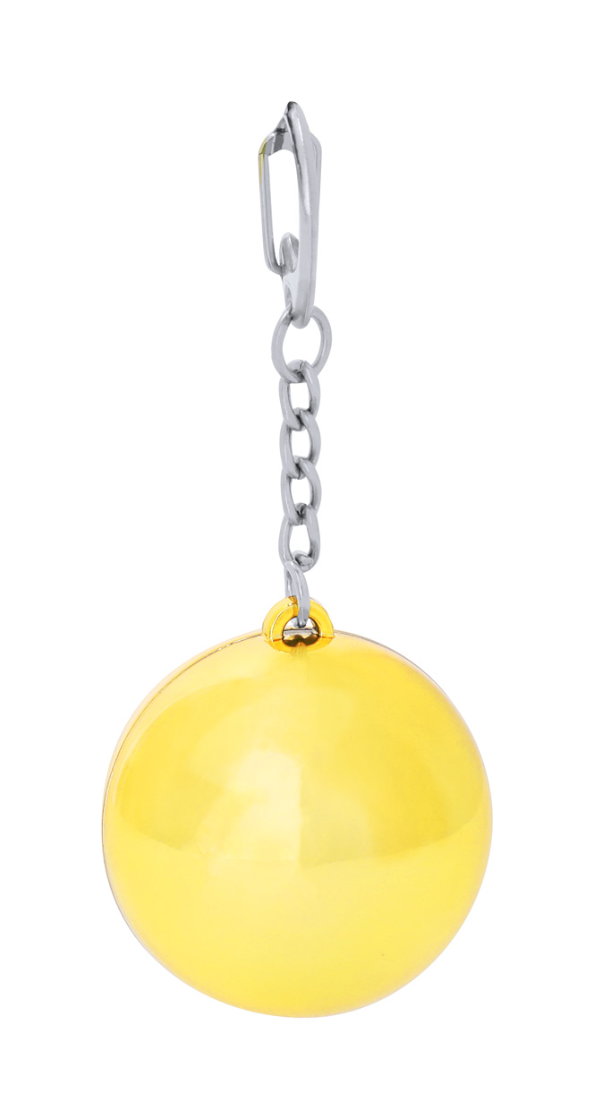 Bálsamo labial de vainilla en forma redonda, en un envase de color metálico con llavero de metal. Con protección SPF15.