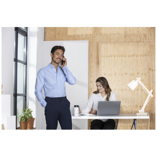 Opzioni di personalizzazione interno. Etichetta principale rimovibile per un maggiore comfort. Taschino sul petto. Colletto button-down. Polsino regolabile a piega singola. Bottoni in tinta abbinata. Piega centrale sul retro. Oxford 55% Cotone e 45% Poliestere, 130 g/m2.