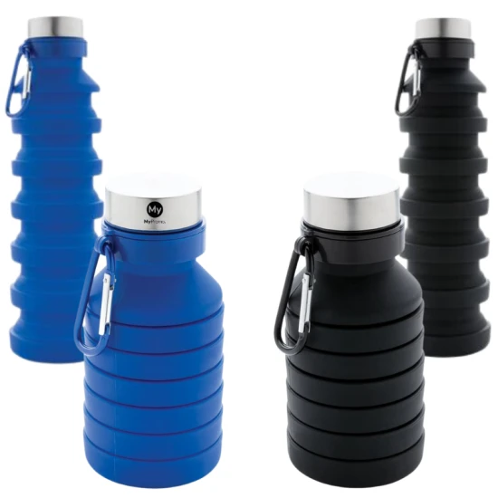 Borraccia pieghevole | Silicone | 550ml | Con moschettone | Risparmia il 50% di spazio