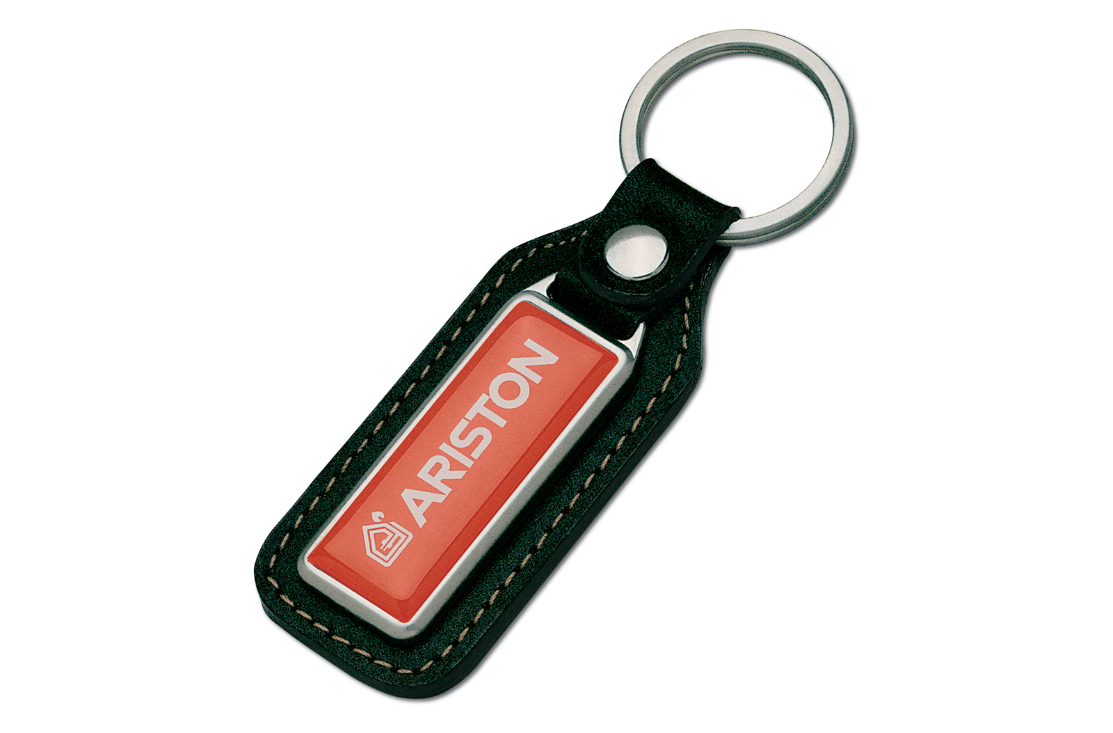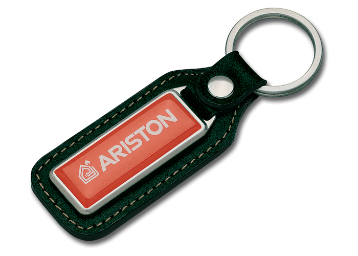 Portachiavi rettangolare in metallo e vera pelle. Possibile doming.