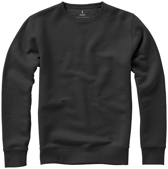 Crew neck. Flat knit rib V-insert at center front. Brushed inside for soft, warm and comfortable feel. Flat knit collar. Flat knit rib cuffs. Flat knit rib bottom hem. Satin shoulder to shoulder tape. Half-moon. Heat transfer main label for tagless comfort. Knit of 80% Cotton and 20% Polyester, 300 g/m2.